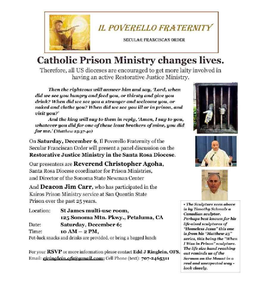 Il Poverello Fraternity, Petaluma, CA, is hosting a day of reflection on December 6, 2025, from 10 am to 2 pm. Please see flyer for information.